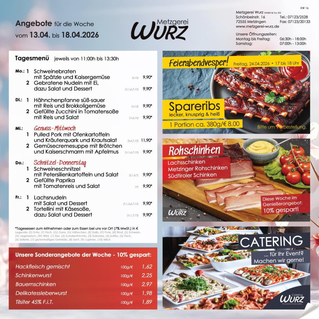 Zusätzlich zu unseren Tagesmenüs bieten wir Ihnen aus unserer Imbisstheke: