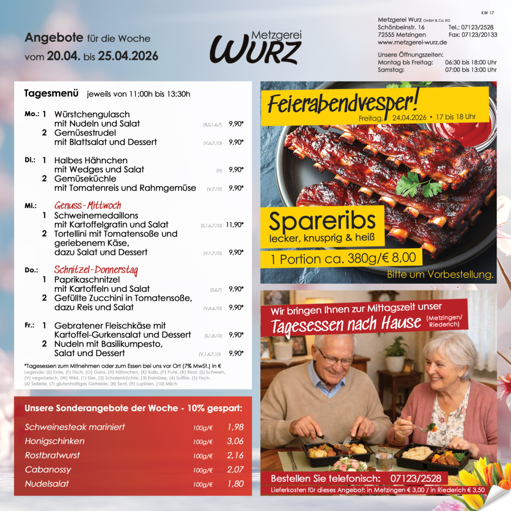 Gerne können Sie Ihr Mittagessen zur Abholung vorbestellen.